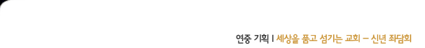 금융위기 여파로 여전히 전 세계가 냉랭하다. 사랑을 실천하라하신 예수님의 명령을 실천하는 기독교인들의 섬김이 어느 때보다도 절실한 때이기도 하다. 우리 새문안교회는 2009년 한해 어려움에 처한 이웃과 세상을 향해 “품고 섬기기”를 선포했다. 새문안의 사랑 실천과 섬김이 이웃의 약자들 눈에 얼어붙은 눈물을 따스하게 녹여주기를 바라는 마음에서 ≪E새문안≫지는 2009년 연중기획의 주제를 교회표어와 같은 “세상을 품고 섬기는 교회”로 정했다. 이제 매월 연재될 연중기획에 앞서 그 방향을 점검하고 무게를 둬야할 주제를 선별하기 위해 신년좌담회를 마련했다. 지난 1월 18일(주일) 아침 홍보출판부 편집실에서 10시부터 2시간여 동안 차장 민현식 집사 사회로 진행된 좌담회에서는 세상을 품고 섬기는 사역 공동체로 거듭나는 새문안교회를 위한 다양한 제안들이 나왔다. 아울러 우리교회에서 뿌리를 내리려는 새교우들을 품고 섬기며 교육하고 안내하는 새교우부 사역을 지상으로 소개한다. (편집자 주)