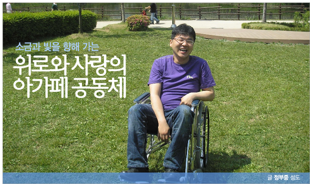 아가페봉사부는 ‘참 소금과 빛 같은 곳’이다. 장애인과 비장애인이라는 세상의 잣대가 아니라 하나님이 주신 소명과 삶 안에서 열심히 살아간다. 정말 보잘 것 없는 쪽방에서 불편한 몸을 이끌고 아침 일찍 한 시간이 넘는 거리를 스쿠터를 타고 오면서도 장애를 입은 것이 죄를 덜 짓는 거 같다며 읊조리는 형님, 세상에서의 높은 지위와 직업에도 아가페에서 한없이 낮아지는 분들… 장애인과 같이 한평생을 살아가겠다는 신념으로 헌신하는 분, 이외에도 각자의 삶속에서 열심히 살아가는 아가페 식구 한명 한명이 다 나한테는 빛이요 소금이요 선생님이다. 세상 속에서 지치고 가치관이 흔들리고 주님의 공의를 알고 싶은 분들은 꼭 아가페에 참석해보시라고 권하고 싶다. 그리고 마지막으로 식구들에게 인사드린다. 아가페 식구들 참 감사드립니다. 저에게 세상에서 가장 중요한 걸 깨닫게 해주셔서… [e-새]